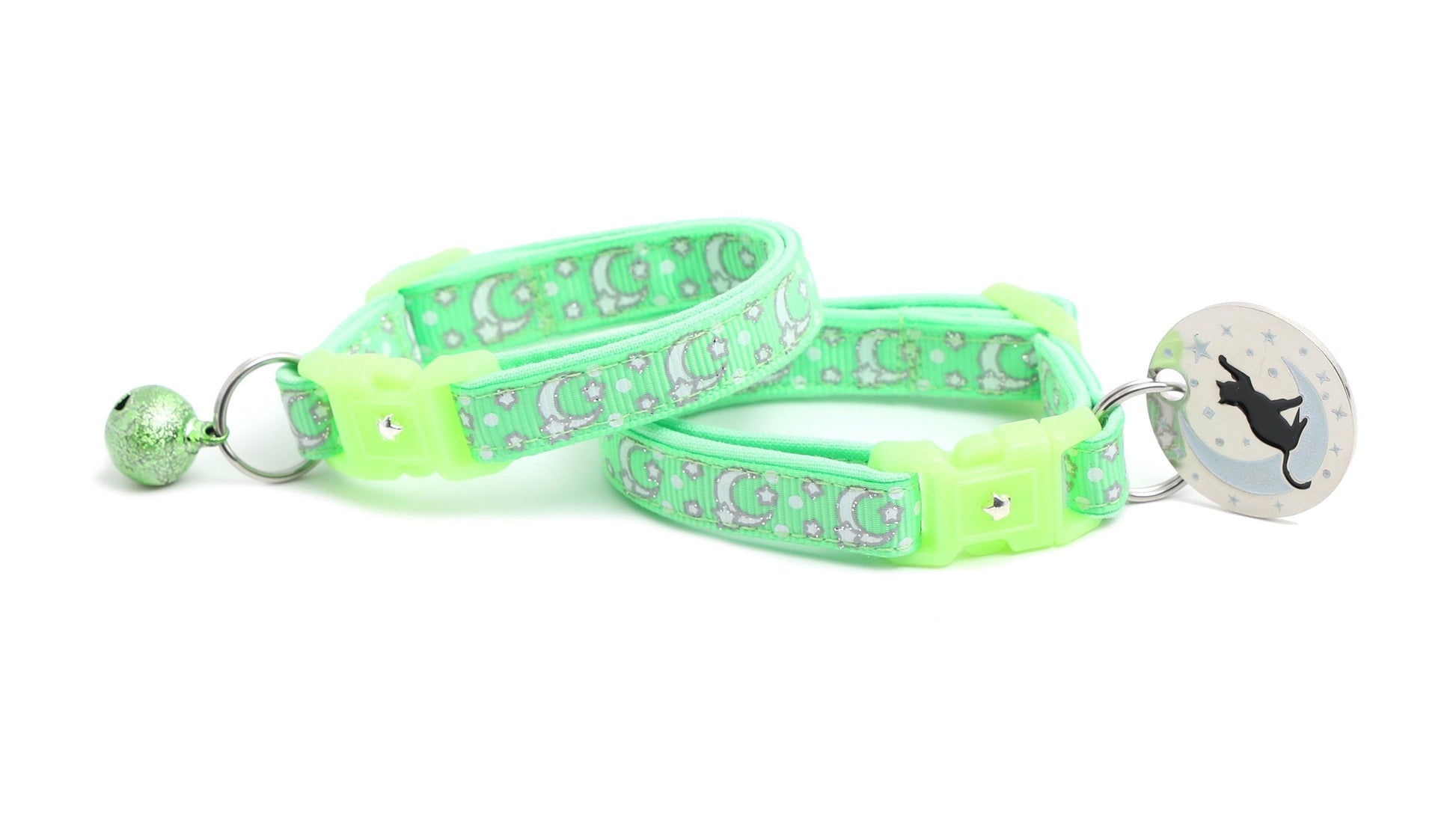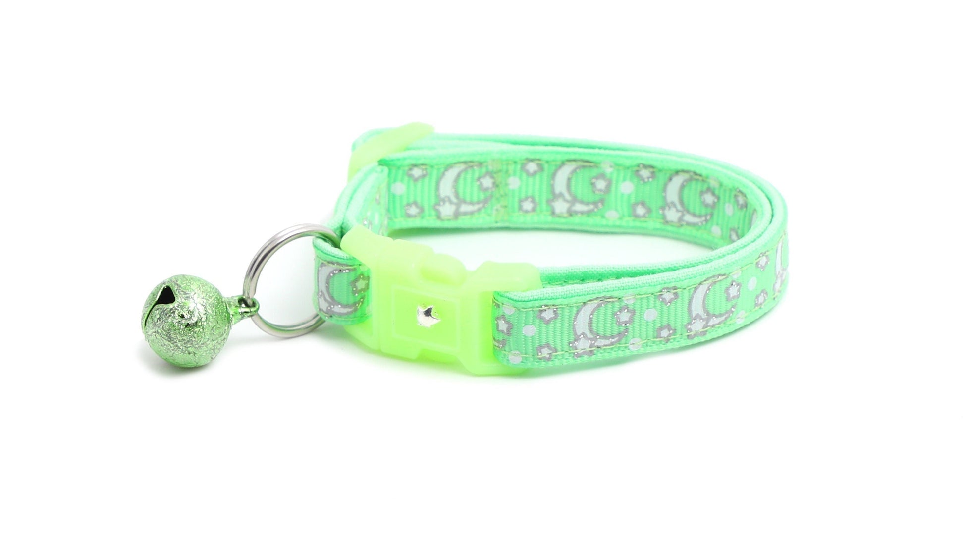 Silver Moons and Stars on Mint Green Cat Collar